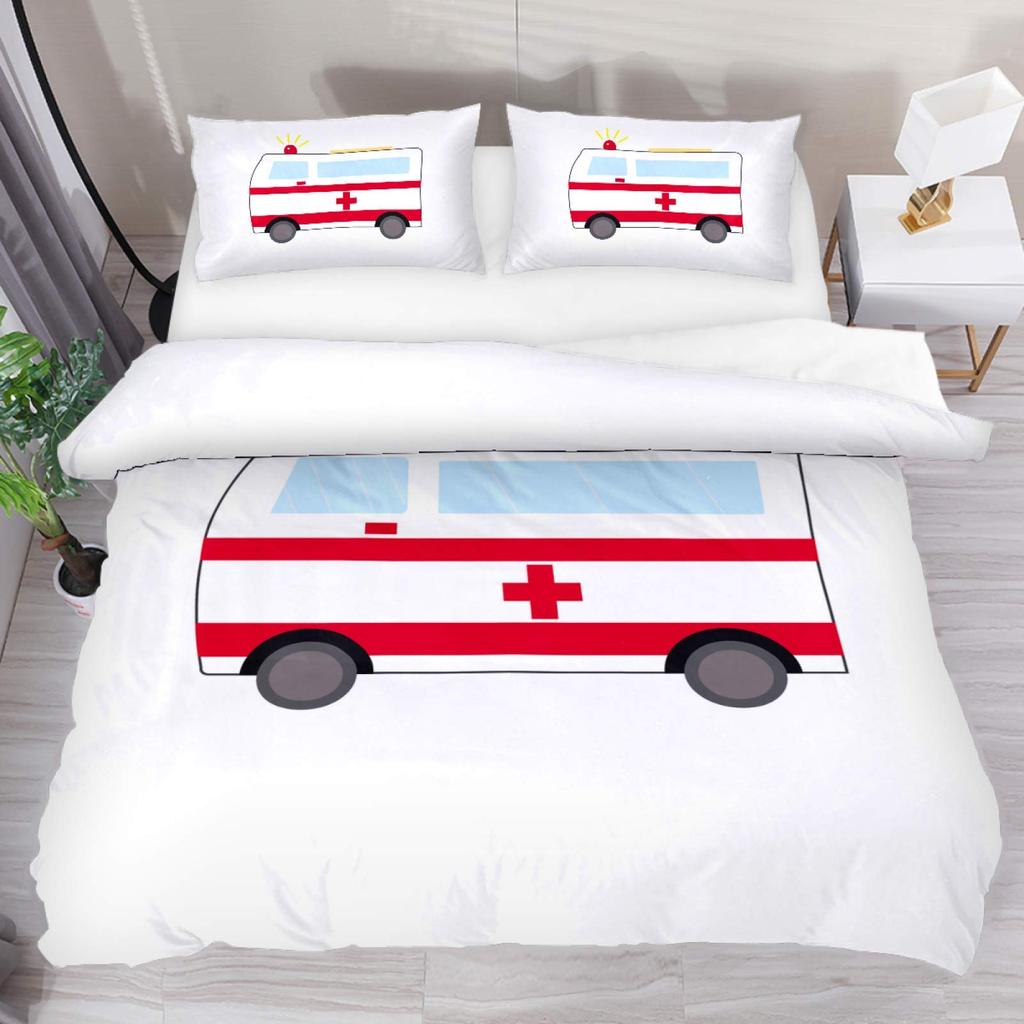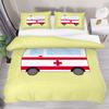 Ambulance Car King Queen Duvet Cover White Cartoon Medical Car Bedding Set For Kid Hospital Rescue Vehicle Polyester Quilt Cover