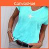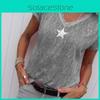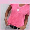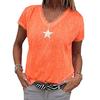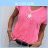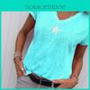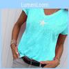 Stylish Women V-neck T-shirt Casual Loose Star Summer Shirts Solid Short Sleeve Perfect For Outdoor Activities