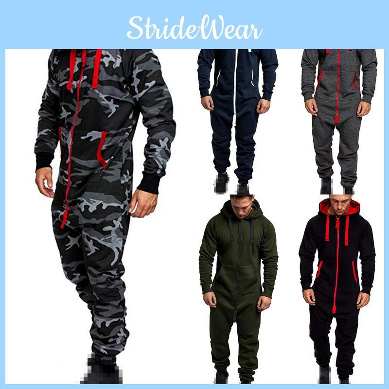 Hooded Men's Long Sleeve Camouflage Onesie Jumpsuit For Casual Wear**