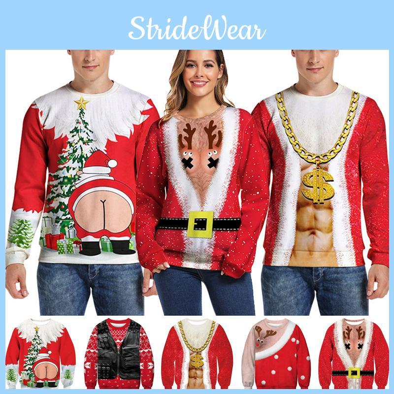 Cozy And Festive 3d Ugly Christmas Print Crew Neck Pullover Sweatshirt For Women And Men