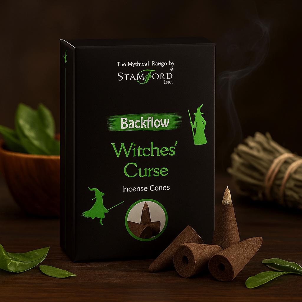 “Witches’ Curse” carries a cool, green clarity—aloe’s dewy freshness entwined with tender leaf notes—clean, earthy, and softly intriguing. Set a cone on a compatible backflow burner and watch the smoke descend in silky currents, pooling below in calm swirls. The dark brown cones, crafted in India with a hollow base for the backflow design, create a striking visual against the burner’s surface—simple, mesmerizing, and serene. 🌿🌫️