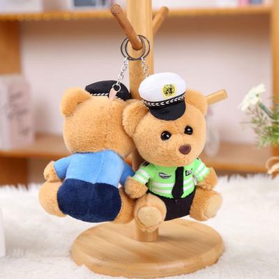 Boutique internetová celebrita policejní medvěd plyšová hračka dopravní policie medvěd malý přívěsek klíčenka panenka uniforma plyšový medvídek přívěsek