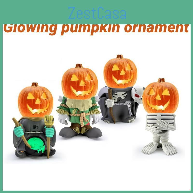 Unique Halloween decoration with a glowing pumpkin head