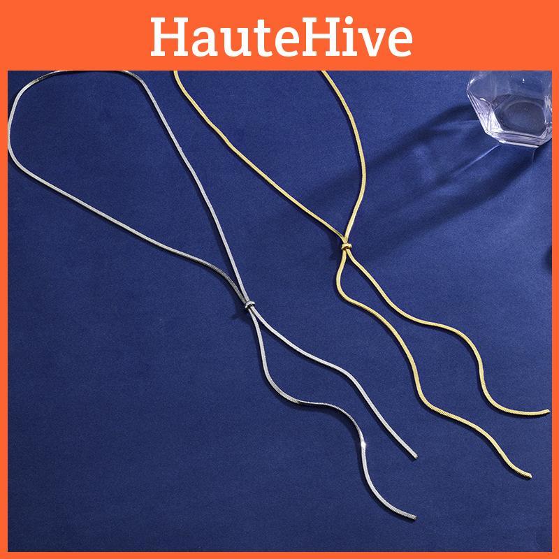 Elegant 18k Gold Plated Snake Bone Chain Sweater Necklace With Bow Design For Women