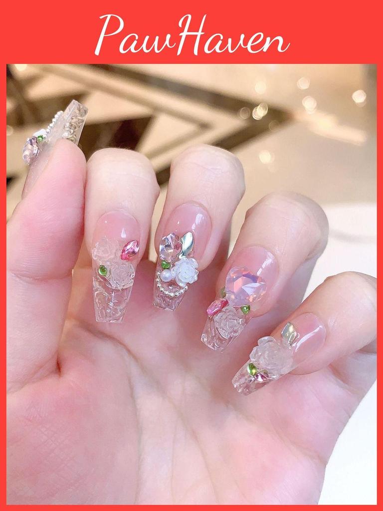 Enhance your nail game with our Handmade Ice Crystal Rose Summer Gradient Nail Stickers and experience the epitome of beauty and elegance. Elevate your style, leave a lasting impression, and turn heads wherever you go. Don't miss out on this hot-selling item, order yours now and get ready to dazzle with your fabulous nails!