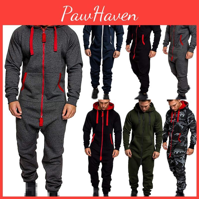 Hooded Men's Long Sleeve Camouflage Onesie Jumpsuit For Casual Wear**
