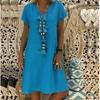 Stylish Summer Women's Short Sleeves V-neck Tunic Midi Dress For Plus Size Fashion