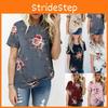 Elegant Summer Women Blouse Floral Print Short Sleeve Loose Casual T-shirt Tops