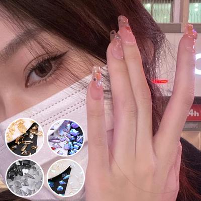 Flash Třpytky Aurora Čtvercový Diamant Nošení Nehtů Mandlové Nehty Umělecké Tablety Sladká Bílá Dívka Falešné Nehty