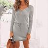 Cozy Deep V-neck Womens Knitted Jumper Sweater Dress For Autumn And Winter