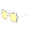 Trendy Square Frame Sunglasses With Oversized Rhinestones For Unique Fashion Style And Uv380 Protection
