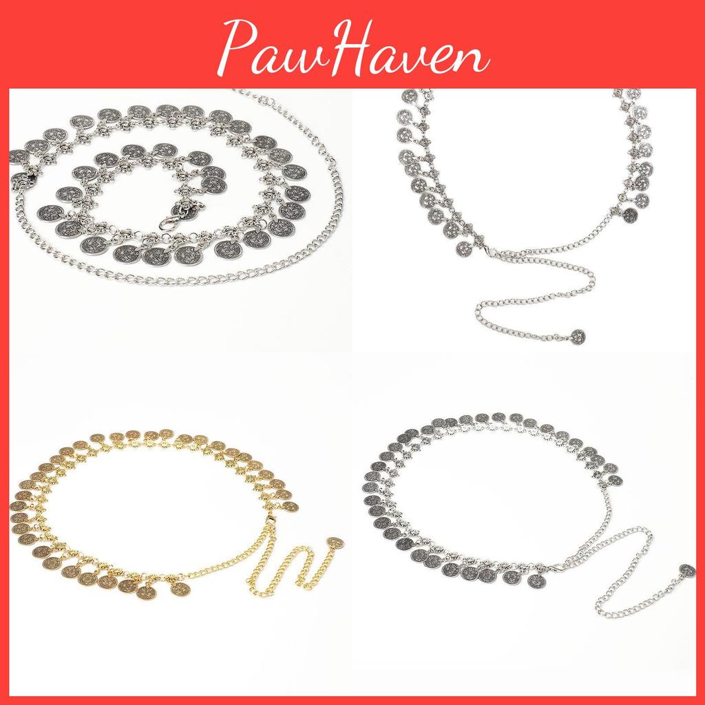 Style Metal Waist Belt With Coin Pendant And Hook Closure For Womens Fashion