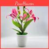 This faux jasmine blossom potted plant features vibrant colors including rose pink, white, pink center, and yellow, crafted from durable plastic and film materials. Measuring 16CM high by 10 CM wide, it offers a realistic appearance for indoor and outdoor garden decor. Ideal for home decoration, wedding setups, photography, or outdoor displays, it supports aesthetic enhancement in various settings. To maintain its fresh look, wipe with a damp cloth periodically.
