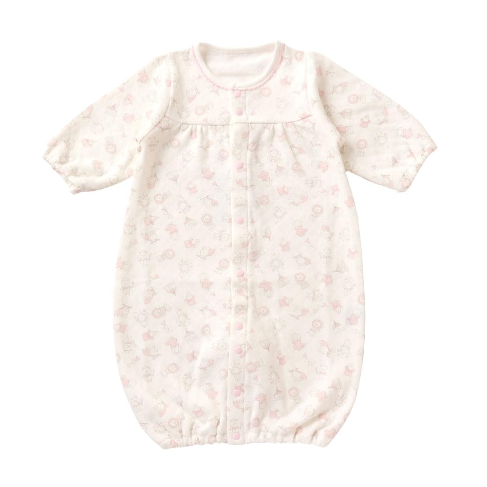 Cream de Coco in Diamond Quilted Circus Pattern Crotch Newborn Baby Clothes Cute Animal Print Pink and Yellow Boys and Girls Soft Warm [Made Japan]