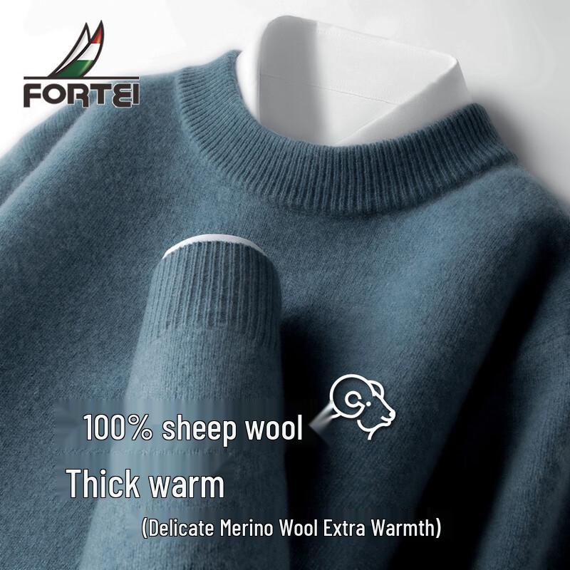 Futing Men's 100% Sheep Wool Warm Crew Neck Sweater