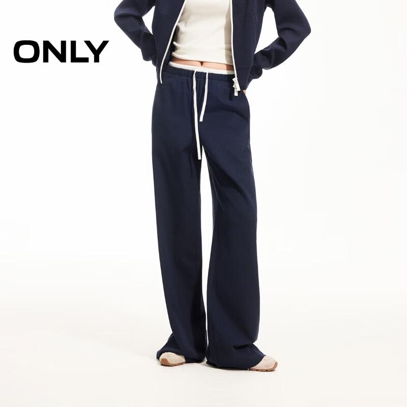 ONLY Women's Relaxed Fit Color-block Waist Straight-Leg Casual Pants
