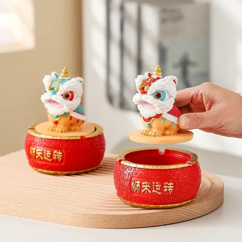 1pc Chinese Style Wealth Attracting Lion Ashtray for Home and Car Décor New Year Decorations Desktop Lucky Feng Shui Ornament