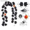 Gothic Halloween Decoration Vine Artificial Maple Leaf & Pumpkin Vine with Spider Skull Hands for Creating Spooky Fall Ambiance