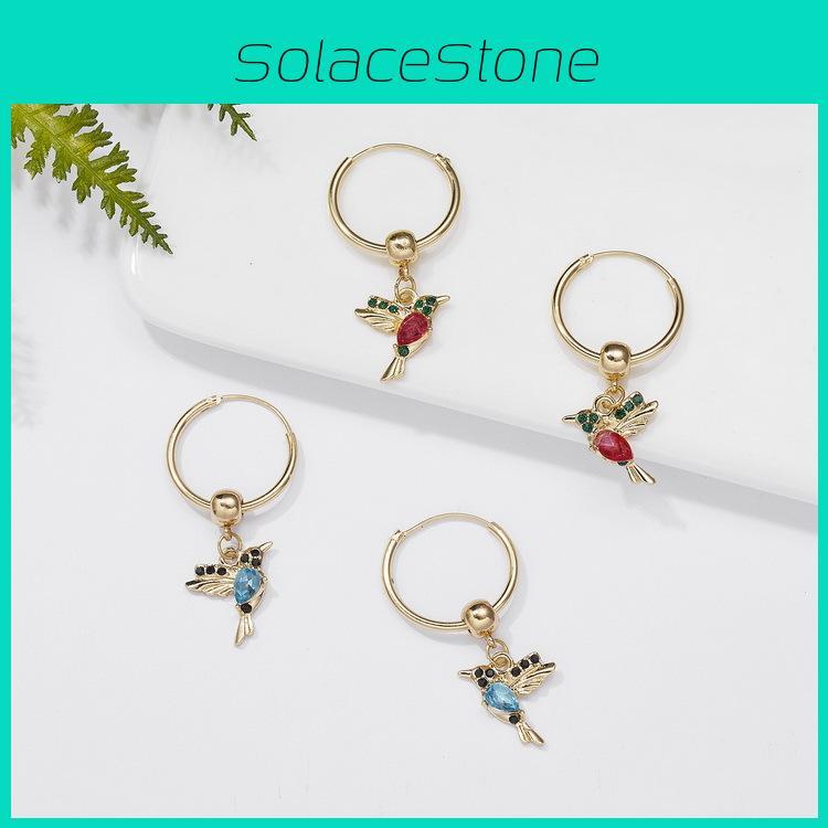 Bird Earrings Alloy Water Drilling Retro Hummingbird Hoop For Gift Shops