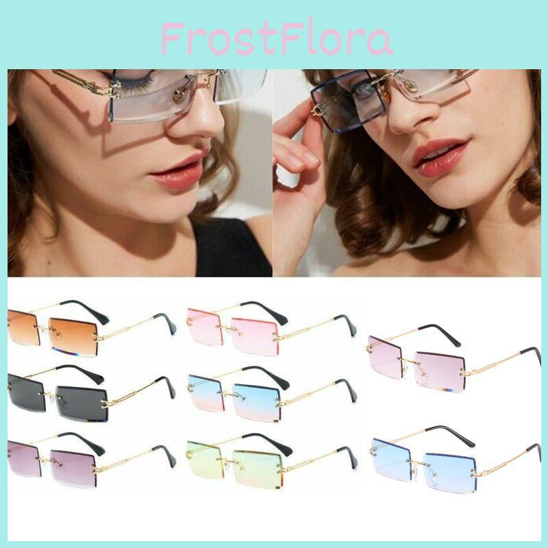 Stylish Rimless Rectangle Women's Sunglasses Uv400 Protection For Summer Casual Wear