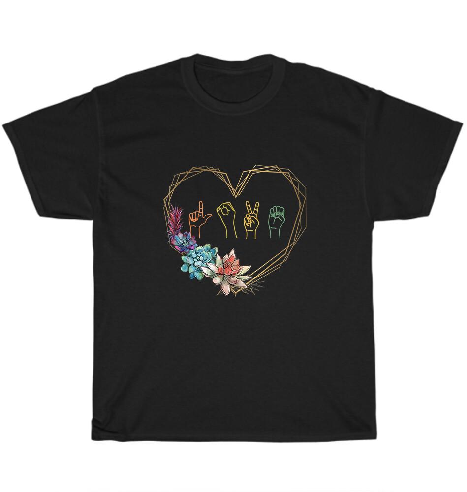 Miluji Znakový jazyk Květinové Srdce ASL Dárek na Valentýna Tričko Unisexové Tričko NOVÉ