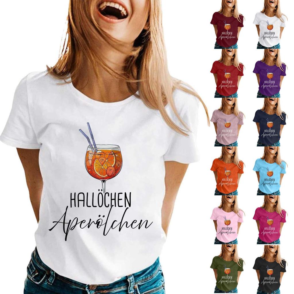 Summer Party Travel Wear Italian Shirt, Weekend Casual Loose Vacation Shirt Women's Fashion Printed Casual Round Neck Short Sleeve Top