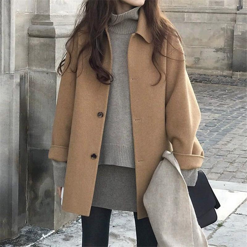 Women's Spring/Fall Mid-Length Oversized Trench Coat Korean Style Slimming Imitation Wool Coat Commuter Blazer Jacket