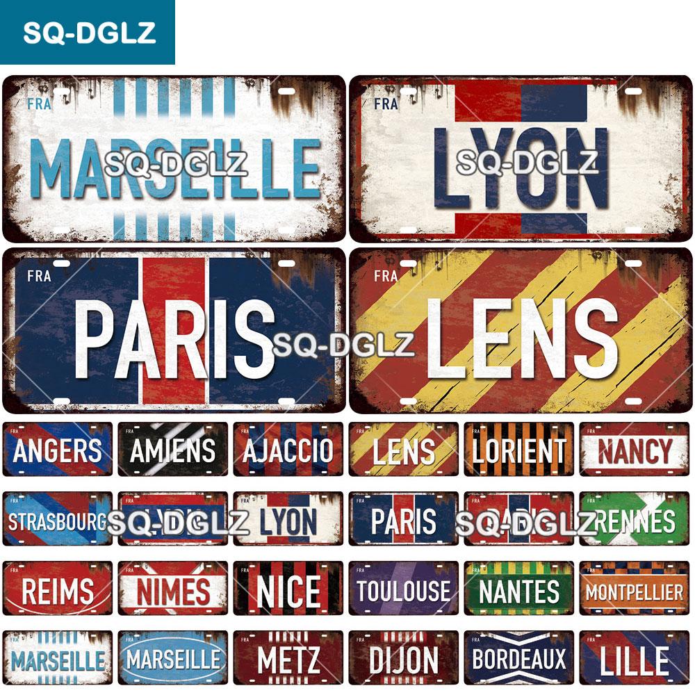 [SQ-DGLZ] Vintage France City Metal Sign Tin Sign Licenses Plate Decor Plaque Metal Vintage Bar Pub Club Home Wall Decoration