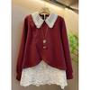 New Korean Style Lapel Splicing Temperament Lace Top Loose Slimming Long-sleeved Top
