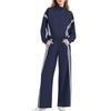 Dámská módní jednobarevná mikina s dlouhým rukávem a zipem, s elastickým pasem, kapsou a ležérními tepláky, dvoudílná sada