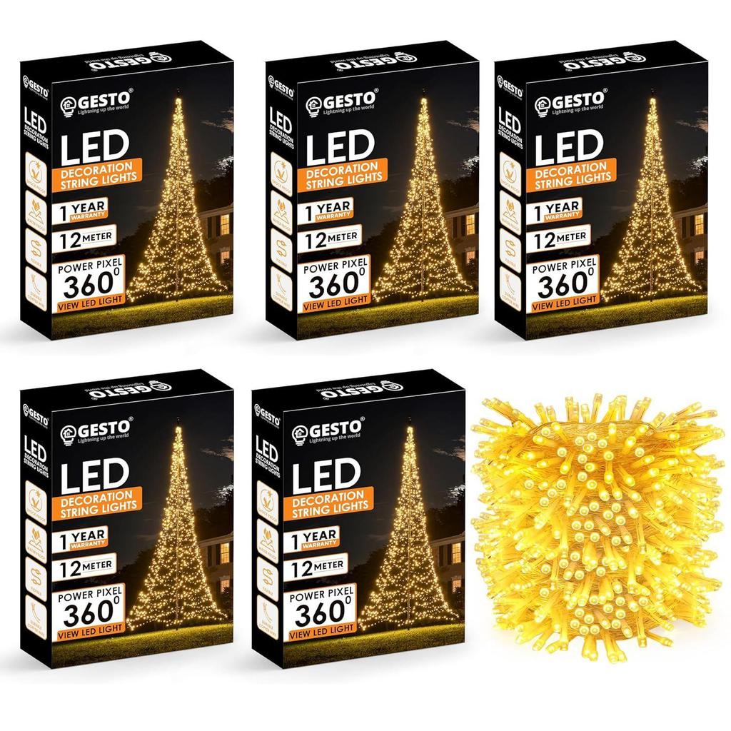 Warm White Led Serial String Lights – Waterproof Copper Wire Yellow Fairy Lights for Home Decoration,Christmas, Deepawali & Diwali Decoration Lights for Balcony Outdoor (12 Meter | Pack of 5)