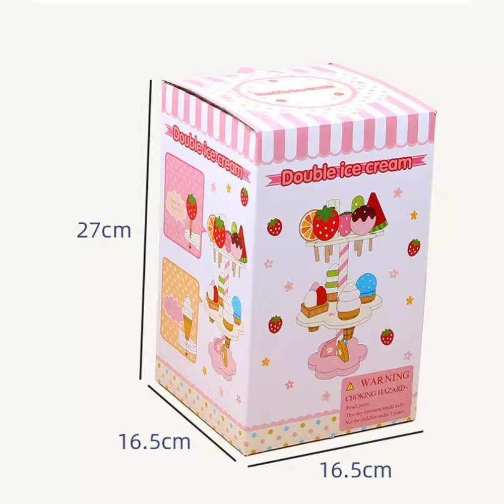 Children's simulation playhouse kitchen strawberry ice cream counter three-layer ice cream ice cream tower Cheche Le wooden toy