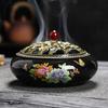 Porcelánový Držák na Vonné Tyčinky Černé Santalové Dřevo Dutý Vzor Květiny Aroma Hořák Kadidelnice Domácí Dekorace