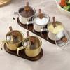 304 Stainless Steel Condiment Set with Lid Spoon Tray Korean Style Kitchen Spice Storage Containers for Sugar Pepper Salt