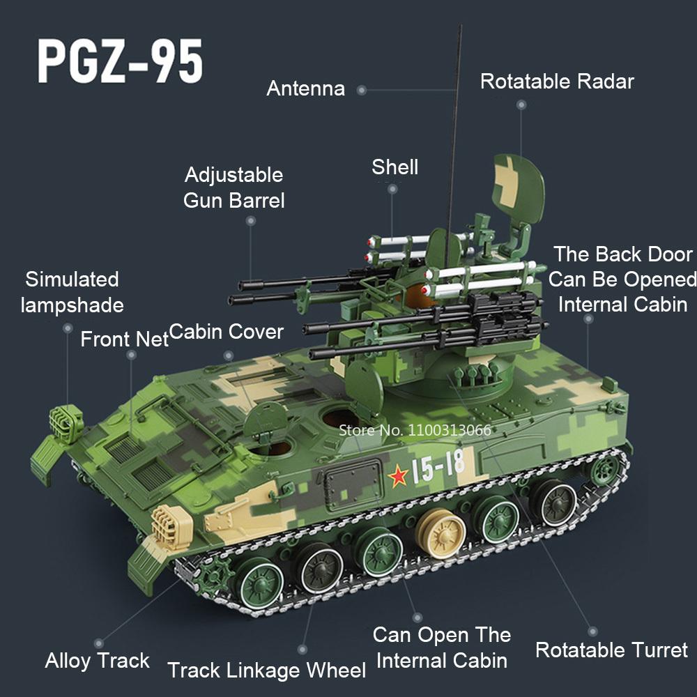 1:28 Alloy Diecast PGZ-95 Tanks Cars Toys Models Wheels Rotate Miniature Vehicles Tailgate Can Opened Tank for Child Adult Gifts