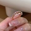 Stylish Sakura Pink Half Circle Zirconia Ring For Women Adjustable Copper Geometry