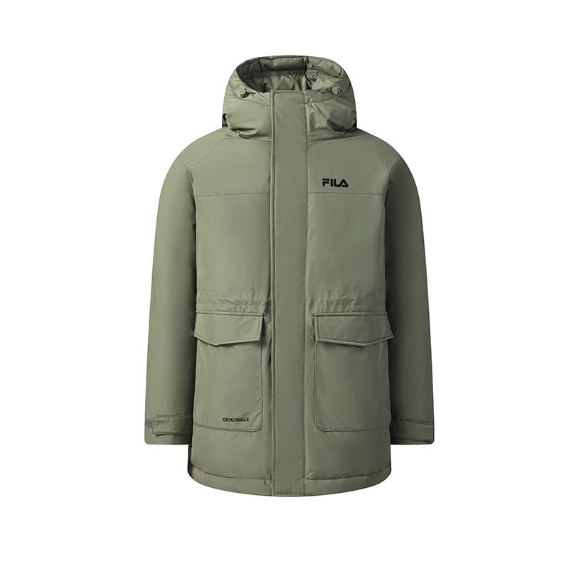 FILA Original Simple Fashion Retro Classic Versatile Comfortable Casual Warm Mid-Length Down Jacket Men Outerwear Green F61M549902FKK