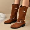 Fashion Retro Cowboy Women Boots Outdoor Western Mid Calf Boots Women Slip on Winter Knight Boots Plus Size Comfortable Shoes for Women