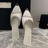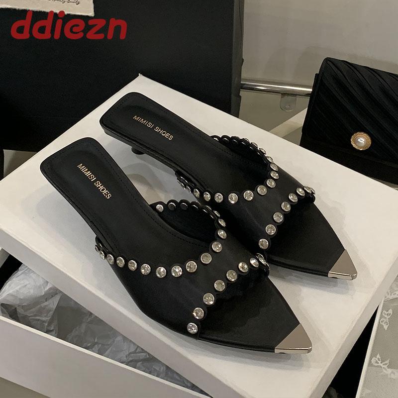Fashion Fashion Luxury Rhinestones Women Low Heel Slippers Sandals Shoes Female Pointed Toe Footwear Ladies Heeled Slippers Slides Shoes