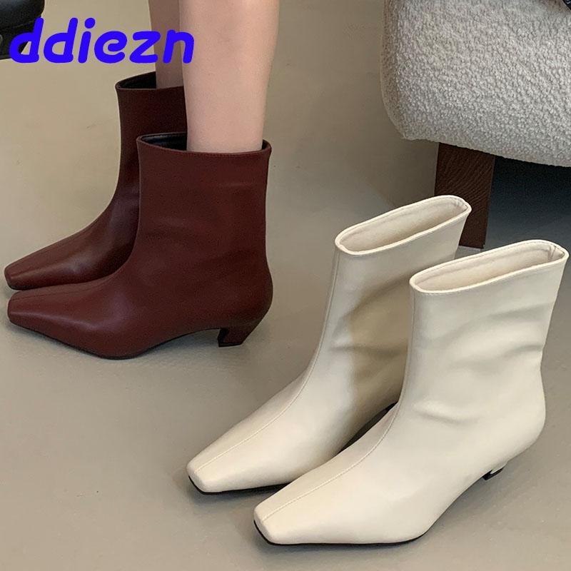 Fashion New Footwear Medium Heels Women Ankle Modern Boots Female Slip On Shoes Fashion Square Toe Ladies Short Booties Heeled Shoes