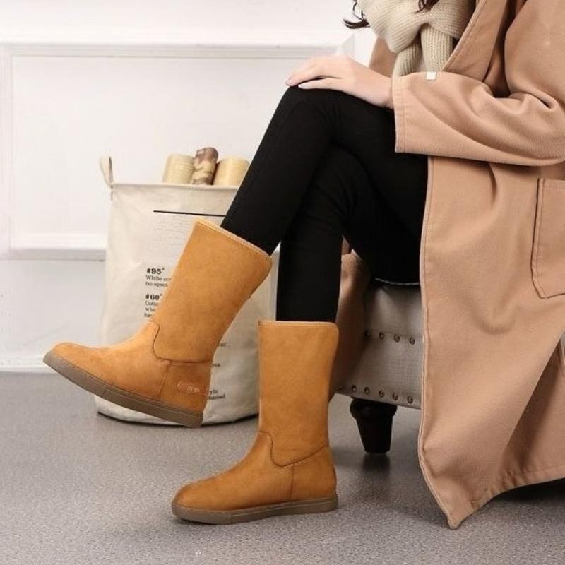 Fashion Winter Round Toe Half High Soft Sole Woman Shoes Designer Luxury Lamb 2025 New in Plush Warm Hot Sale Work Snow Boots for Women