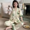 Peach print large size pajamas women's summer new imitation cotton short-sleeved trousers medium mother loungewear