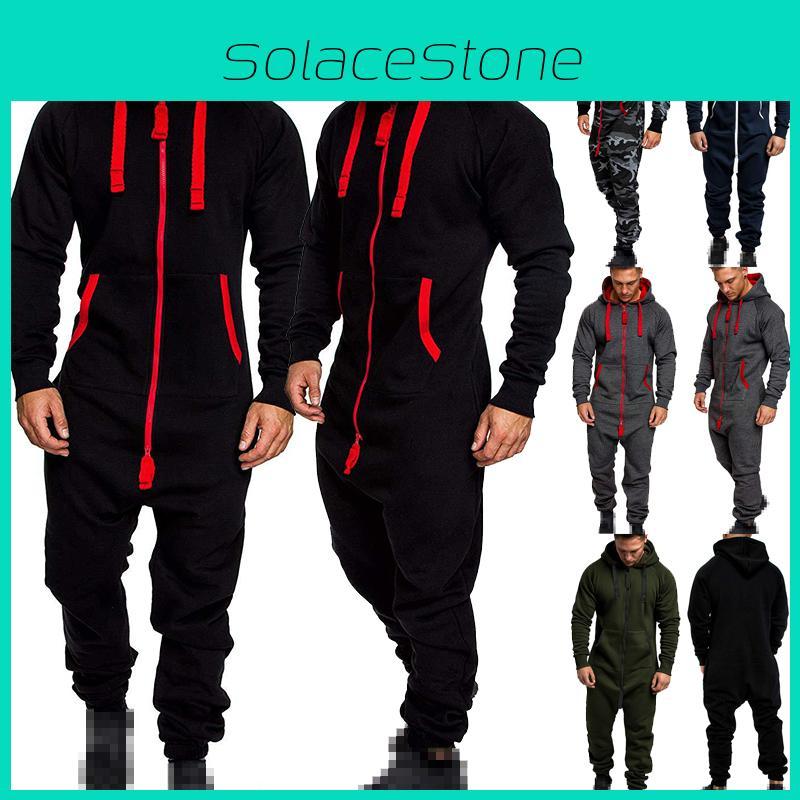 Hooded Men's Long Sleeve Camouflage Onesie Jumpsuit For Casual Wear**