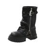 Fashion Women's Shoes 2025 Fashion Square Toe Women's Boots Side Zipper Winter Solid Middle Tube Platform Chunky Heels Boots