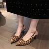 Fashion Leopard Print Summer Pointed Toe High Heel Women's Sandals Fashion Slip-On Mules for Ladies Party Dress Shoes
