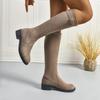 Móda 2025 Dámské kozačky pod koleno Nové zimní nazouvací boty s robustním podpatkem Žena Retro Teplé Jednobarevné Dlouhé kozačky Dámské Kozačky z semiše s kulatou špičkou
