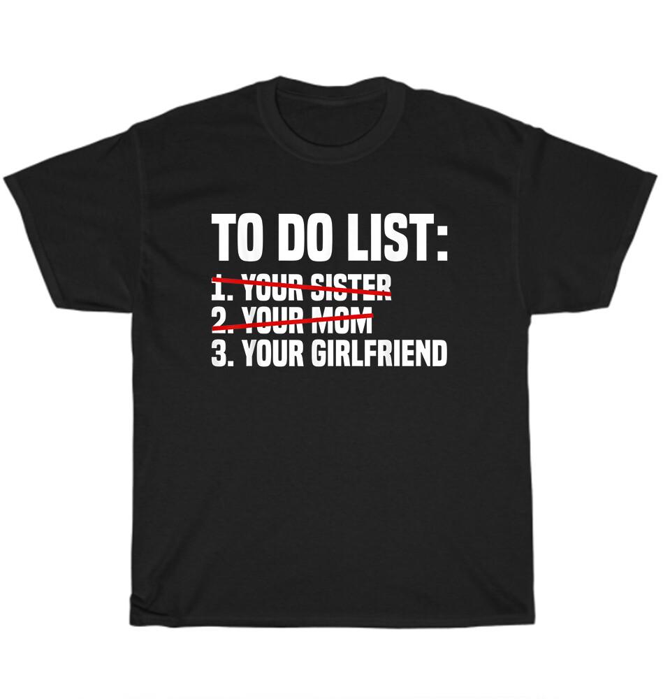Seznam úkolů Tvoje sestra máma přítelkyně Vtipný sarkastický nápis Tričko Unisex Dárek