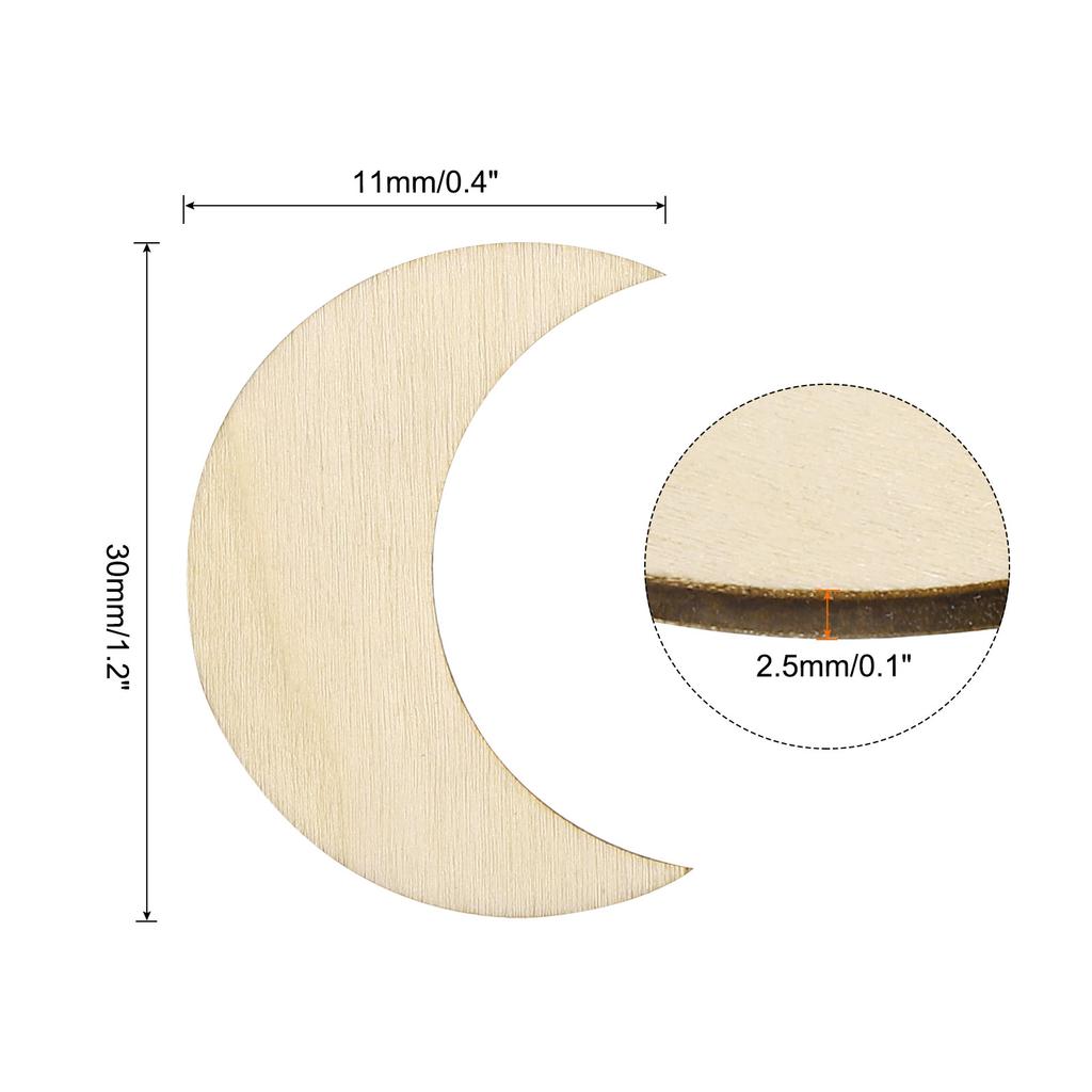 5/10/20/50/100pcs Wooden Moon Unfinished Wood Moon Blank Wooden Cutouts Ornaments Natural Wood Pieces for Christmas Party Craft
