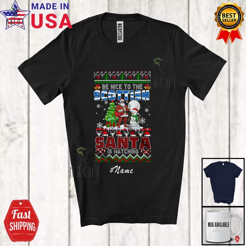 Vlastní jméno Milý ke skotskému Úžasný vánoční svetr Mikina Santa Sněhulák