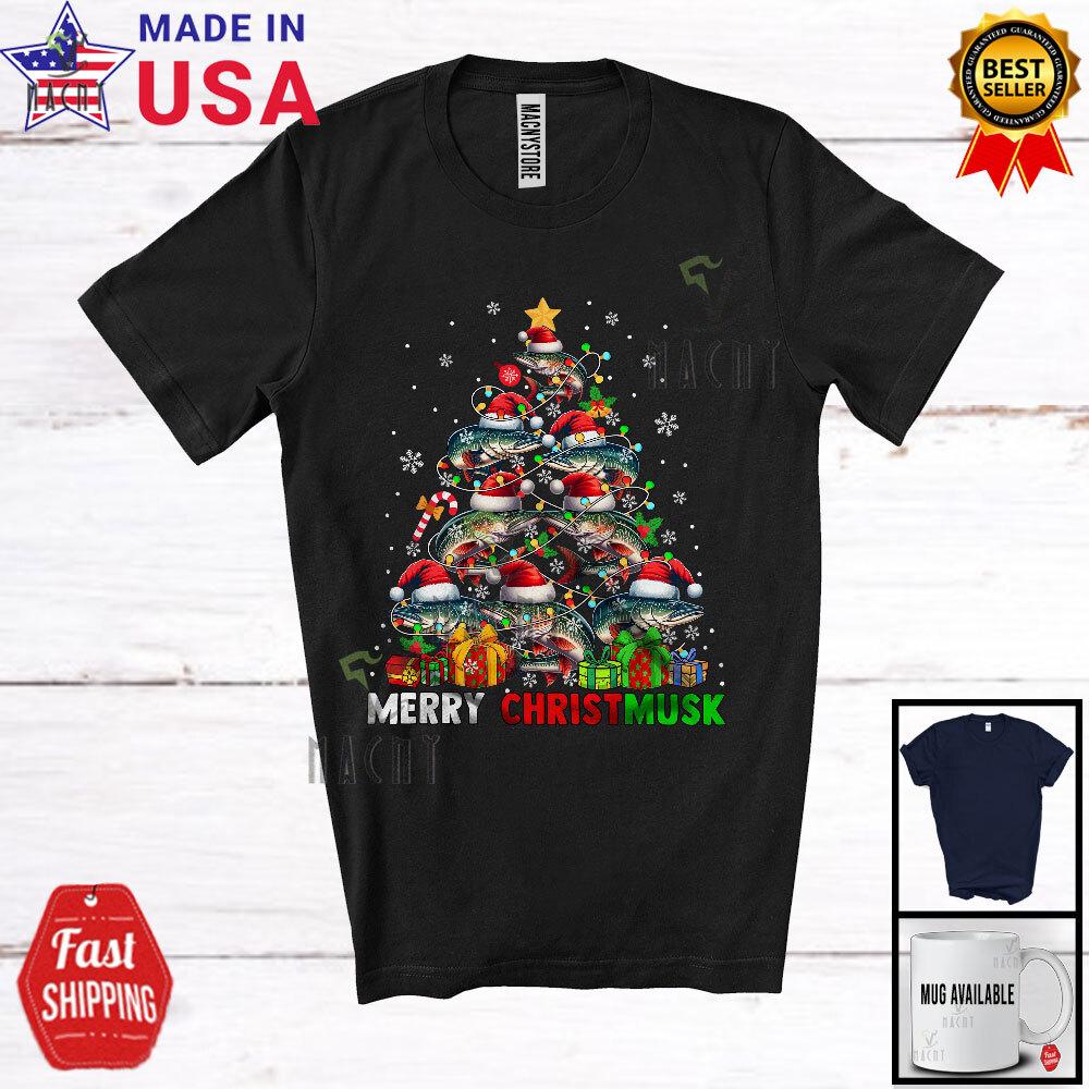 Merry Christmusk Christmas Lights Tree Muskellunge Musky Muskie Fishing Shirt